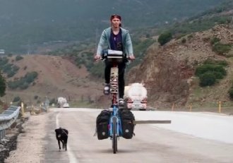 Neustrašivi putnik, koji je prošle godine pokupio štene lutalicu, kreće se po celom svetu sa svojim usvojenim psom, pomoću visokog bicikla koji ima ugrađenu prikolicu za njegovog krznenog prijatelja.