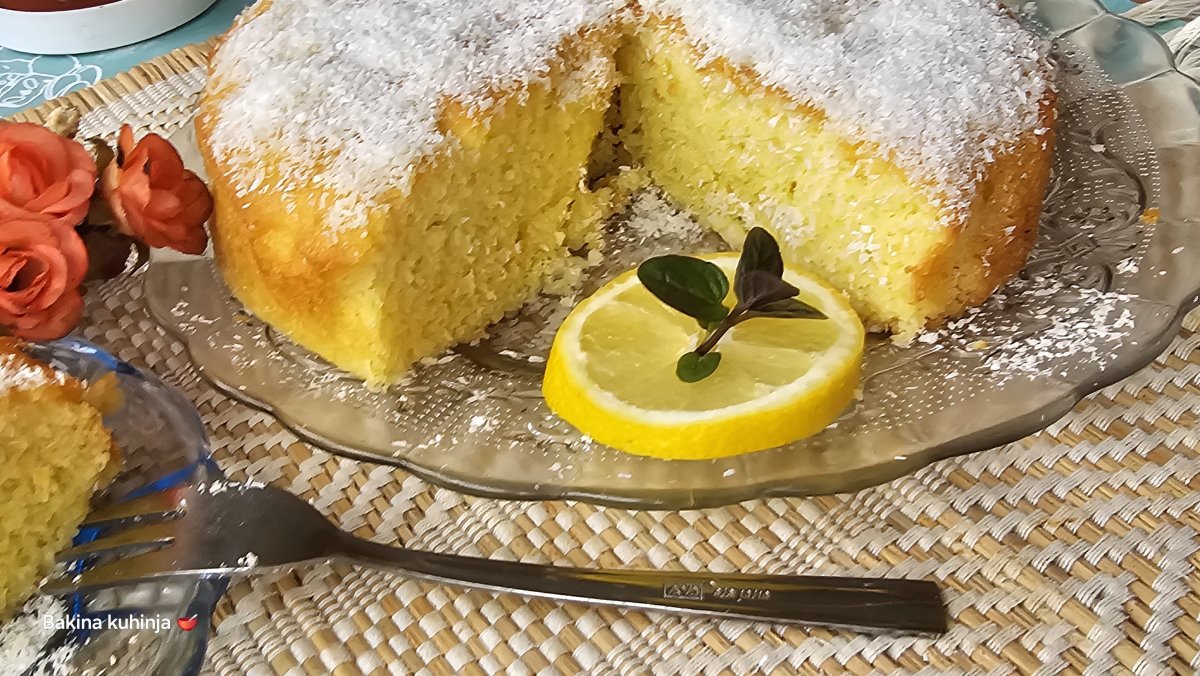 Sipati provreo sirup na vreli pečeni kolač polako da upija, pa dodati šaku kokosa odozgo dok je mokar. Možete kolač premazati medom, pa kokosm odozgo po želji.