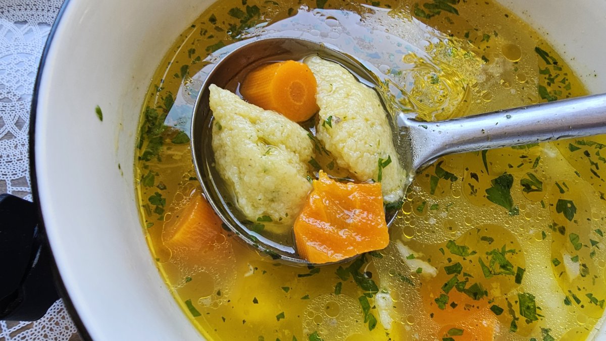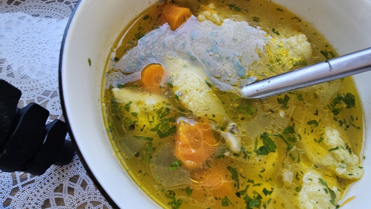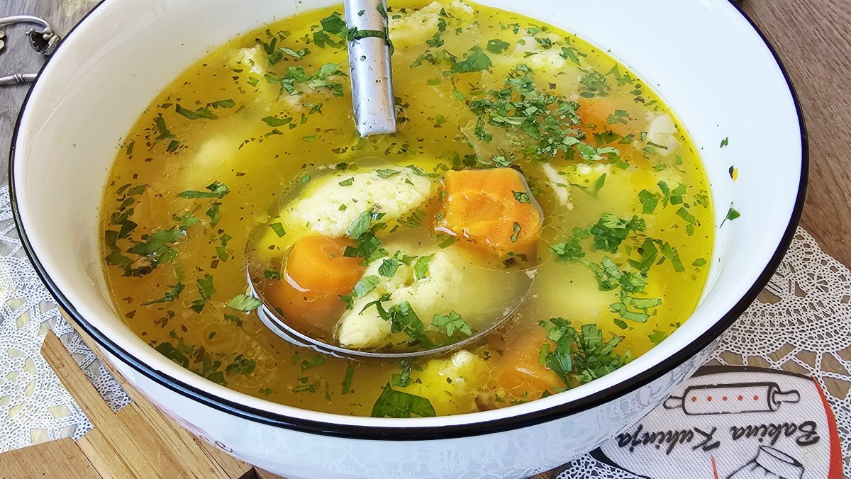 Jednostavna za pripremu i izuzetno hranjiva, ova "zlatna supa" savršena je za oporavak, a mekane knedle od griza dodaju joj dodatnu punoću.