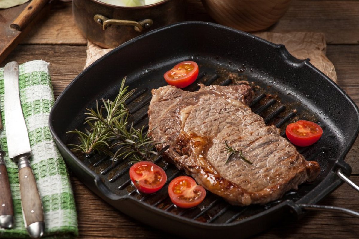 U tiganju zagrejte maslinovo ulje i puter, pa dodajte beli luk, ruzmarin i timijan. Kada zamiriše, stavite meso i kratko ga propržite sa svih strana dok ne dobije zlatnu koricu.