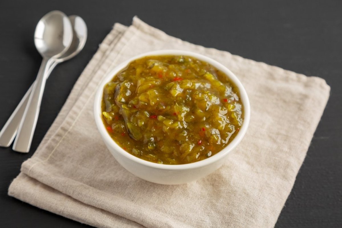 Vruću smesu sipajte u sterilne tegle, ostavljajući malo prostora do vrha. Pažljivo uklonite mehuriće vazduha pomoću noža i zatvorite poklopce. Tegle spustite u veliki lonac s ključalom vodom, vodeći računa da se ne dodiruju, i kuvajte ih 10 minuta.