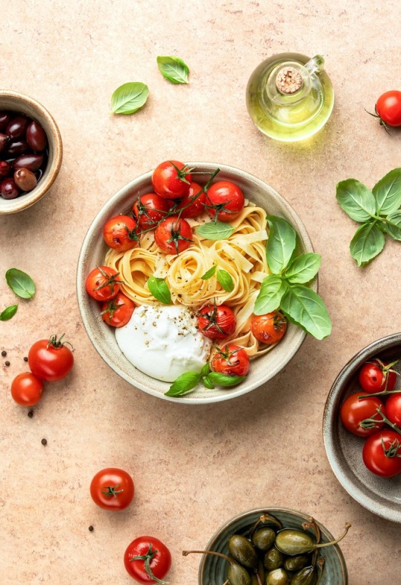 Kada luk postane staklast, dodaje se svež paradajz - oguljen, sitno seckan, i uz kap-dve maslinovog ulja pretvara se u sos pun ukusa i boje. Dodaju se samo so, biber i prstohvat origana – ništa više.