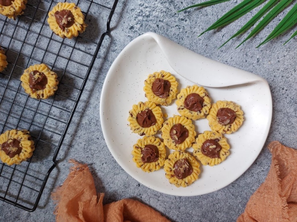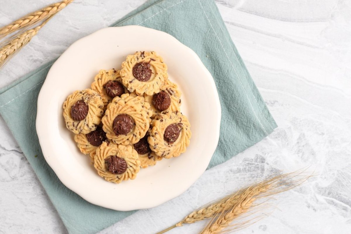 Zagrejte rernu na 175-180 stepeni i pecite kolačiće 12-15 minuta, dok blago ne porumene po ivicama. Ostavite ih da se kratko prohlade na plehu, a zatim ih prebacite na rešetku da se potpuno ohlade.