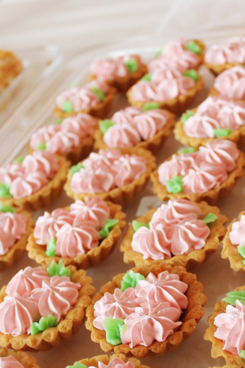 U svaku ohlađenu korpicu pomoću poslastičarskog šprica utisnuti fil. Praviti dekorativne spiralne ili cvetne oblike (kao na fotografiji).