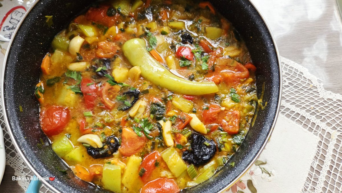 Pred sam kraj kuvanja dodajte krupno nasečenu ljutu papričicu, da ostane blago čvrsta, i osam suvih šljiva koje jelu daju poseban šmek.