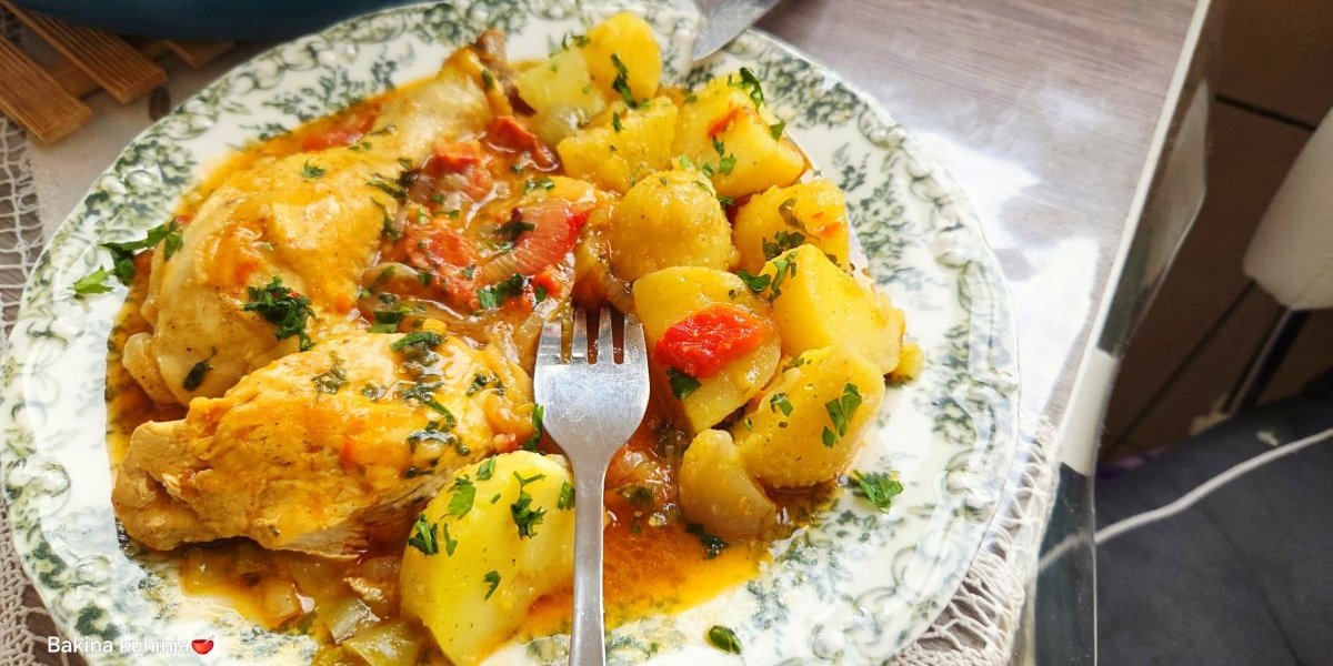 Luk se polako dinsta dok potpuno ne omekša i ne pretvori se u najfiniji, gusti saft koji savršeno grli komade piletine. Uz dodatak paprike i paradajza, ukus postaje još bogatiji i podseća na najlepše ručkove iz detinjstva.