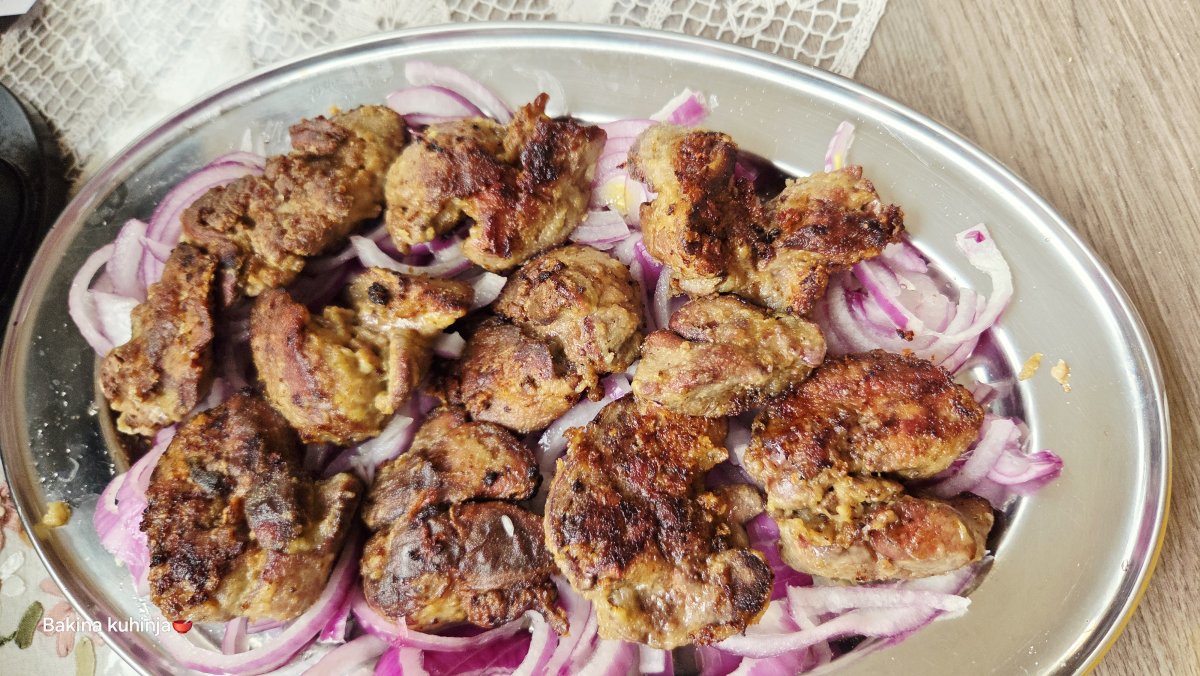 Prženu džigericu vaditi direktno na pripremljeni luk, preliti sa malo onog toplog ulja iz tiganja i sve lagano izjednačiti.