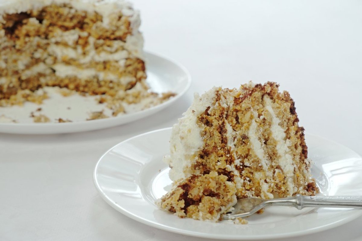 Kombinacija mekane kore sa orasima, bogatog krema od žumanaca, keksa i maslaca, kao i vazdušastog šnea sa karamelom na vrhu, čini ovu tortu pravim užitkom kojem se teško odoleva.