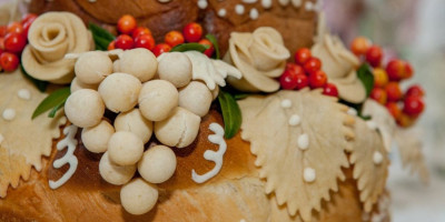 Za dekoraciju pomešajte vodu, brašno, gustin i so dok ne dobijete ujednačenu masu. Oblikujte sitne kuglice koje ćete poređati po vrhu kao grozdove. Po želji možete dodati i listove napravljene od testa.