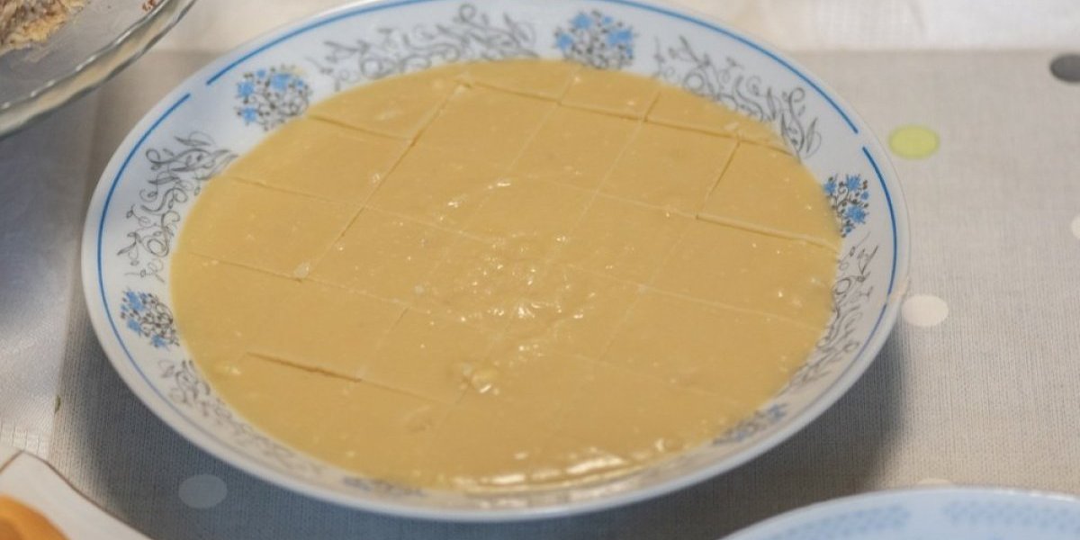 Izblendan bob prebacite u odgovarajući kalup ili posudu i prelijte pripremljenom zaprškom. Ostavite da se ohladi i stegne pre nego što ga poslužite.