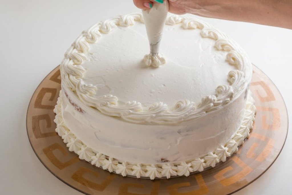 A preostali šlag pomešajte sa eurokremom, pa sipajte preko malina. Celu tortu ukrasite šlagom.