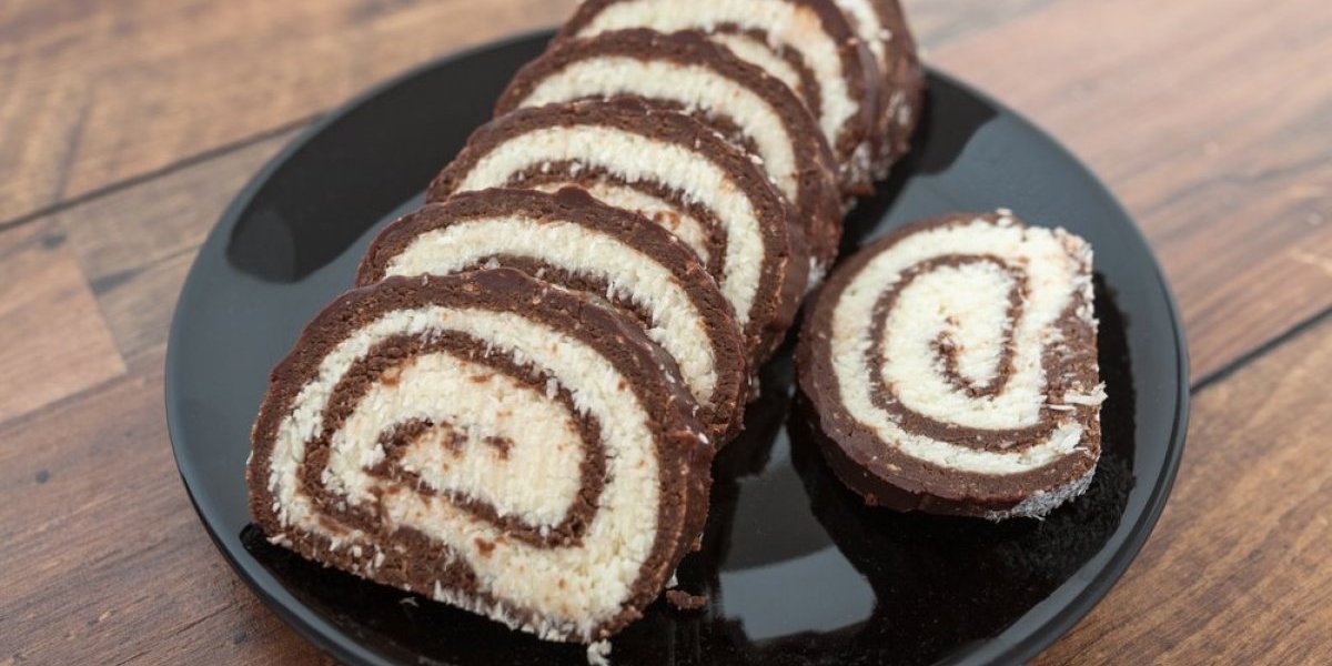 Uvaljajte rolat u kokos i stavite ga u frižider na najmanje 2 sata da se stegne pre sečenja i serviranja.