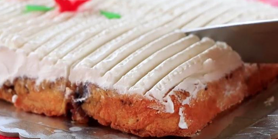 Peći oko 30 minuta, ostaviti da se prohladi pa odozgo staviti šlag ili umućenu slatku pavlaku.