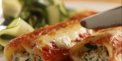 Na ulju propržiti sitno iseckani crni luk, izrendanu šargarepu, pa dodati mleveno meso. Sve zajedno dinstati dok se meso ne uprži do pola. Začiniti po ukusu, dodati kećap i sve dobro promešati. Kore podeliti uzduž tako da se od jedne dobiju dve kore. Na sredinu svake kore staviti fil, svaku preklopiti sa obe strane prema sredini i urolati. Dobijene kanelone složiti u podmazan pleh. Preliti ih umućenom smesom od jaja i kisele pavlake i posuti izrendanim kačkavaljem. Kanelone peći u rerni na 200 stepeni, 35 do 40 minuta.