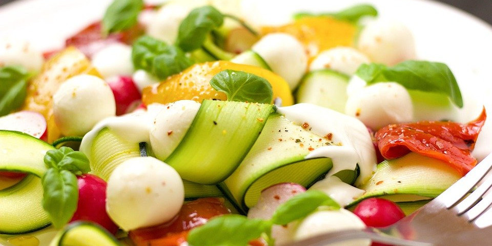 Tikvicu oljuštite, a zatim je isecite dužinom na veoma tanke listove i poređajte na tanjir ili u neku posudu. Odozgo nalijte preliv, promešajte, a zatim stavite sir. Ukrasite bosiljkom, a po želji salatu možete obogatiti i rotkvicama, pečenom crvenom paprikom, kriškama pomorandže...