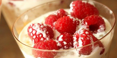 U staklene čaše sipajte malo krema, stavite komadiće piškota, pa opet krem, dok ne napunite čašu. Ukrasite malinama, i služite dobro ohlađeno.