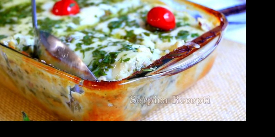 Posle 45 minuta je gotovo, dok je još vruće pospite izrendanim sirom i peršunovim lišćem. Prijatno!