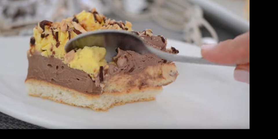 Pomoću dve kašike postavljajte naizmenično filove, tako da dobijete šah efekat. Stavite u frižider dok pripremate drugi deo fila
