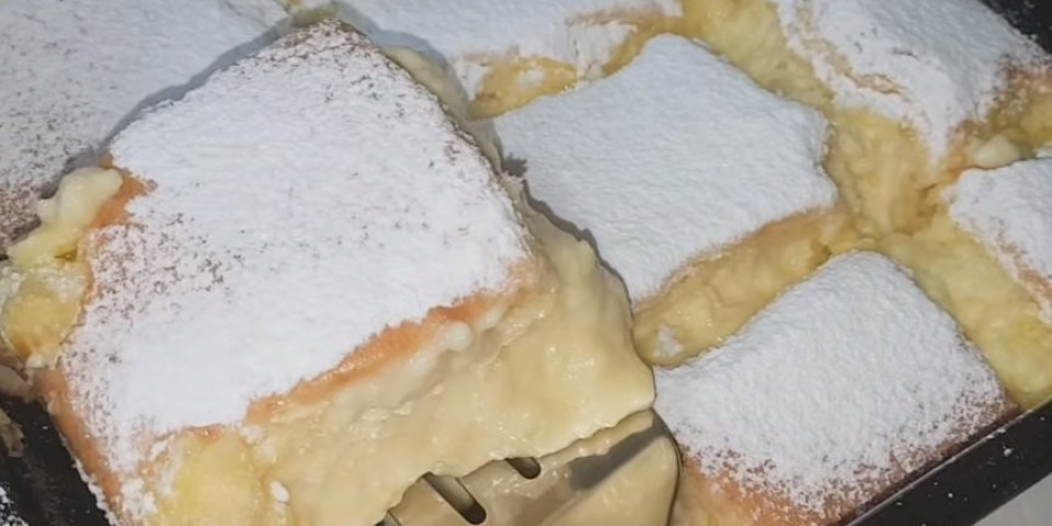 Sastojci: 2 pudinga od vanile, 500-600 ml mleka, 400 g nemasnog sira ili maskarponea, 5 kašika šećera, 5 jaja, šoljica šećera, šoljica ulja, šoljica mleka, vanilin šećer, 500 g brašna, prašak za pecivo.