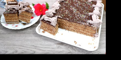 Umutiti 8 belanaca sa 10 kašika šečera u čvrst šne, pa dodati 2 kašike brašna i 100 g mlevenih oraha. Dobro izjednačiti i istresti u pleh 54×35 koji ste obložili pek papirom. Peći na 200°C 15-20 min. Umutiti još jednu koru na isti način. U preostala žumanca dodati 150 g šećera u prahu, pa ih penasto umutiti i staviti na paru da se zgusnu. Pred kraj dodati 200 g čokolade i izjednačiti. Skloniti sa pare i dobro ohladiti. U maslac dodati 100 g prah šećera, pa penasto umutiti. U umućen maslac dodati ohlađenu čokoladu i dobro umutiti u penastu kremu. Pečeni biskvit preseći na pola i tako dobiti 4 kore. Svaku koru premazati kremom osim zadnje kao i sa strane torte. Ostaviti da se prohladi, pa preliti sa rastopljenom čokoladom. Ukrasiti sa čokoladnim šlagom. Tortu ostaviti bar jedan dan u frižideru da upije i stegne se.