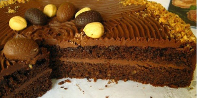 Umutite žumance sa šećerom, dodajte otopljenu čokoladu, mlevene bademe, brašno i na kraju sneg od bjelanaca.