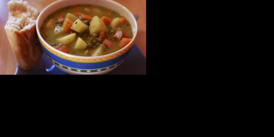 Na ulju propržiti sitno seckan crni luk i seckanu papriku. Dodati na kolutove isečenu šargarepu, dinstati malo i dodati grašak, suva rebra i na kockice isečen krompir. Doliti malo vode pa krčkati. Dodati mleveni crvenu papriku, listove lorbera, malo začina i soli. Naliti da se kuva. Kad se skuva ubaciti razmućeno brašno i seckan peršunov list. Pustiti da provri. Pripretno!