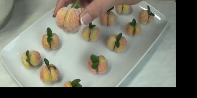 Boju za kolače razmutiti u vodi, dodati aromu kajsije, breskvice umkati prvo u žutu pa u crvenu boju i ostaviti da se boja na njima osuši. Dok su još vlažne uvaljati ih u kristal šećer.