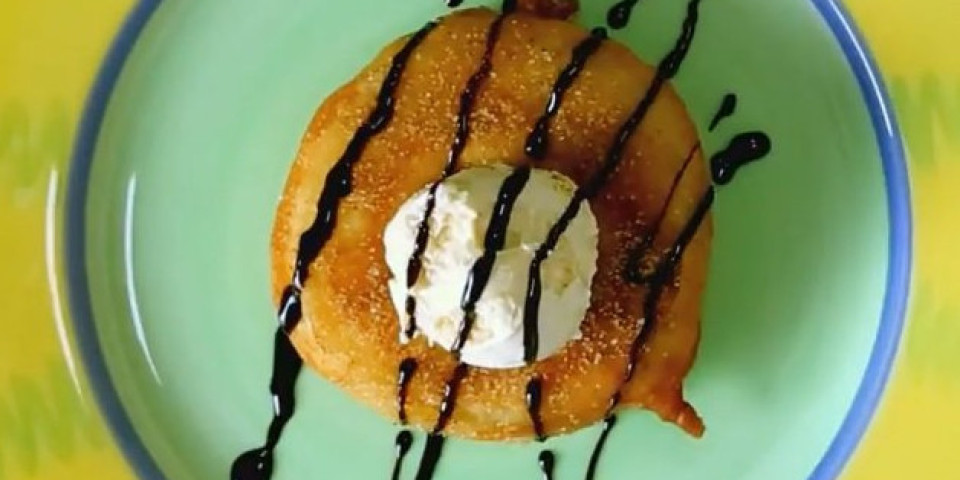 Tako se i jabuke "oblače" u gušću smesu za palačinke, pa se kolutovi jabuka prže u dubokoj masnoći. Služe se tople ili hladne, posute šećerom u prahu i cimetom.