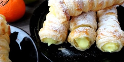 1 pakovanje lisnatog testa, 100 ml slatke pavlake, 1 puding od vanile, šećer, 300 ml mleka, 1 vanilin šećer.