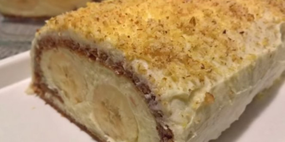Pečenu koru uviti u vlažnu kuhinjsku krpu i uviti u rolat i ostaviti da se hladi. Jaja, šećer i vanilin šećer penasto umutiti i kuvati na pari uz stalno mešanje, na kraju dodati izlomljenu čokoladu i mešati dok se sva čokolada ne rastopi. U ohlađen krem dodati umućeni maslac, dobro izmešati i dodati bademe i rum. Očišćene banane poprskati limunovim sokom.