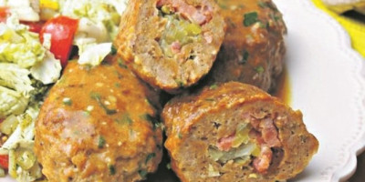 Na maslacu u tiganju prodinstajte rendanu šargarepu da malo omekša. Dodajte na komade seckani praziluk i pečurke, pržite još nekoliko minuta pa ostavite da se ohladi. Odreske istanjite tučkom za meso, pospite začinima i premažite senfom s jedne strane. Na toj strani rasporedite fil od dinstanog povrća i svaki odrezak urolajte, a krajeve pričvrstite čačkalicama. Uvaljajte ih u brašno i kratko ispržite sa svih strana na maslinovom ulju. Prebacite ih u posudu za pečenje obloženu papirom i pecite u rerni na 200 stepeni oko pola sata. Služite uz prilog i salatu po želji.