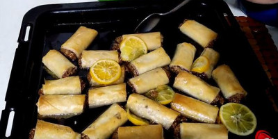 U sud stavimo mlevene orahe, vanilin šećer, 4 kašike šećera i mlevenu plazmu. Dodamo 100 ml ulja, po želji i sok od 1 limuna ili malo vode, pa sve dobro sjedinimo. Na radnu ploču stavimo 1 koru, pospemo sa malo ulja u kojem smo otopili komadić maslaca, pa prekrijemo drugom korom. Na jedan kraj stavimo nadev od oraha i plazme, pa zarolamo. Tako pripremljene stavimo u podmašćen pleh.