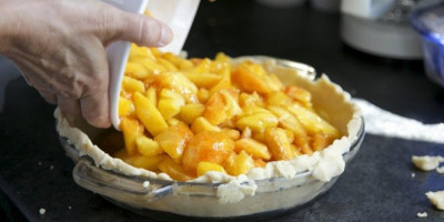 Jabuke operite, oljuštite i isecite na kriške, pa ih stavite u veću posudu. U to dodajte smeđi šećer, brašno, ekstrakt vanile, cimet i so, pa sve dobro izmešajte. Odozgo narendajte koru polovine limuna, a zatim i komadić đumbira. Opet sve dobro izmešajte i prebacite jabuke u podmazan pleh, pa odozgo nalijte rastopljeni puter sačuvajte otprilike dve kašike za kasnije.