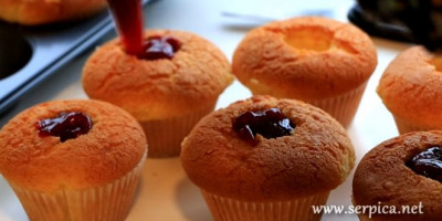 Izvadite malo sredinu mafina pa filujte džemom. Odozgo možete prošarati umućenim limunom i šećerom u prahu.