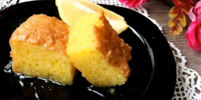 U šećer dodati vodu i sok od pola limuna 1 vanilin šećer i kuvati oko 5 min. Ohladiti. Kolač pečen iseći na kocke pa preliti sirupom.