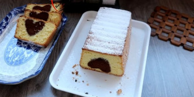 Peći na 200°C u plehu 22×10 cm oko 35-40 min. Probati ćačkalicom da li je pečeno. Dok se biskvit hladi umutiti svetli deo isto samo se ne dodaje kakao. Ohlađen tamni biskvit iseći na debljinu od 1,5-2 cm, pa vaditi kalupom srca ili već neke druge figure koje imate. U dnu kalupa sipati 3 kašike testa, pa poređati isečene figure (ja sam srca) jedna do druge, a odozgo sipati svetli deo. Vratiti u rernu i peći na 200°C oko 35–40 min. Pečen kolač ohladiti i posuti prah šećerom ili preliti čokoladom.