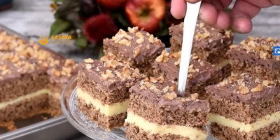 Sastojci za testo: 350 g šećera, 1 vanilin šećer, 2 jaja, 1 kašika soka od limuna, 400 ml mleka, 150 ml ulja, 200 g mlevenih oraha, 400 g brašna, prstohvat soli, 1 prašak za pecivo.