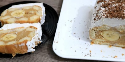 Piškote umočiti u mleko i poređati na foliju u tri reda. Puding skuvati i u mleko ubaciti sečen maslac. Vruć puding isteresti na piškote. U donji deo poređati banane, pa rolat uviti pomoću folije.