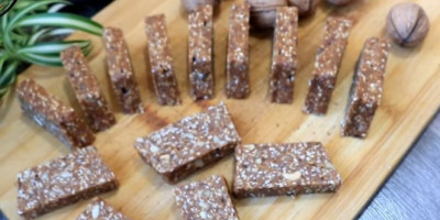 U susam sipati rastopljenu čokoladu, dodati seckane orahe mleven keks prah šećer i sve dobro izjednačiti. Uzan rebrast pleh obložiti folijom i rasporedi smesu i dobro pritisnutu. Ostaviti nekoliko sati da se dobro stegne. Seći i uživati u fantastičnom ukusu..