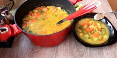 Na ulju propržite seckani praziluk i šargarepu, dodajte na kockice isečen koren celera, prokelj i na kockice isečeni krompir. Pre nego što sve nalijete vodom, dodajte pirinač, psolite i pobiberite. Kuvajte 20-30 minuta i ubacite seckani paradajz. Kuvajte još 2-3 minuta, te na kraju dodajte seckani peršun.