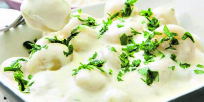 Ostavite da se sve zajedno kuva, nepokriveno, još nekoliko minuta dok se sos ne zgusne i njoke se ne skuvaju.