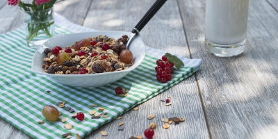 Pomešajte suve sastojke: ovsene pahuljice, suve brusnice, semenke bundeve.