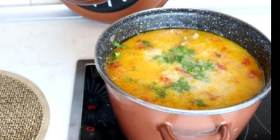 Boraniju i zelen iseckajte, posolite i stavite da se kuva. Kad omekša, dodajte oljušten i seckan paradajz, pa kuvajte još oko 5 minuta. Zatim isključite šporet, ali ostavite čorbu na ringli.