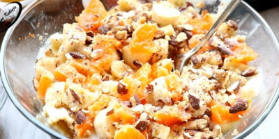 Kriške jabuka izdelite na sitnije komade, oljuštene mandarine na kriške, a oljuštene banane na kolutove. Jabuke i banane poprskajte limunovim sokom, pa sastavite sa ostalim voćem. Mešano voće poslužite u manjim činijama i pospite šećerom u prahu i orašastim plodovima, ukoliko ih volite.