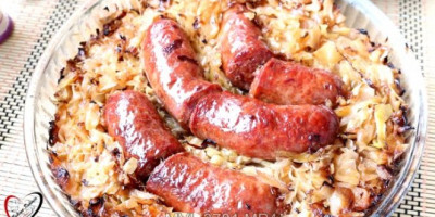 Oljušteni kormpir kuvajte u malo vode, taman toliko da ga prekrije. Kobasice pecite na gril tiganju sa svih strana. Kada budu pečene, servirajte ih sa kupusom i kuvanim krompirom koji ste prethodno začinili po želji. Prijatno!