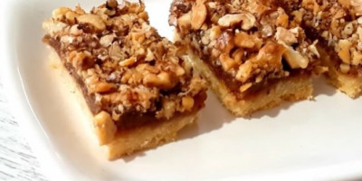 Ostaviti kolač u plehu da se ohladi pa onda može zajedno sa papirom da se izvadi iz pleha ili ga seći direktnu u plehu, kako god da odlučite.