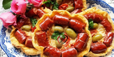 Lisnato testo razviti na pola centimetara debljine. Kobasice zaseći nožem po dužini i spojiti sa pola čačkalice. Testo iseći u krug za 4-5 centimetara šire nego što je krug kobasica, a zatim testo presaviti i ubaciti u svaki prorez zasečene kobasice. U sredinu staviti ajvar, a potom kašiku rendanog kačkavalja. Na kačkavalj staviti 3-4 masline, a možete i čeri paradajz. Ivice testa premazati žumancetom, kobasice premazati uljem. Peći na 210 stepeni oko 30 minuta da lepo porumeni.