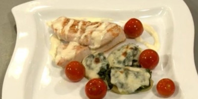 Dodati spanać, pa skloniti sa vatre, umešati parmezan i prohladiti. Ćureći file iseći na četiri šnicle, pa ih istanjiti tučkom za meso. Na svaku šniclu staviti smesu od pečuraka, pa urolati i pričvrstiti mesarskim kanapom.