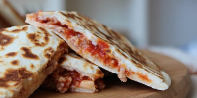 Zagrejte rernu na 260°C i premažite pleh sa malo ulja. Testo za picu podelite na 4 dela. Na blago pobrašnjenoj površini razvaljajte jedan komad testa u krug. Kašiku pelata stavite u sredinu testa, zatim preko stavite rikota sir, kobasicu i izrendanu mocarelu.