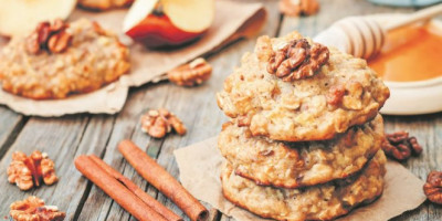 Pre čišćenja urmi potopite ih u vodu i ostavite minimum pola sata, a potom oljuštite i uklonite košticu. Sameljite ih u secku. Jabuke izrendajte, a puter otopite. Ovsene pahuljice, jabuke, urme, puter i cimet dobro umesite. Kašikom vadite loptice i stavljajte na papir za pečenje, pa ih nežno spljeskajte. Pecite ih u prethodno zagrejanoj rerni na 180 stepeni oko 20 minuta.